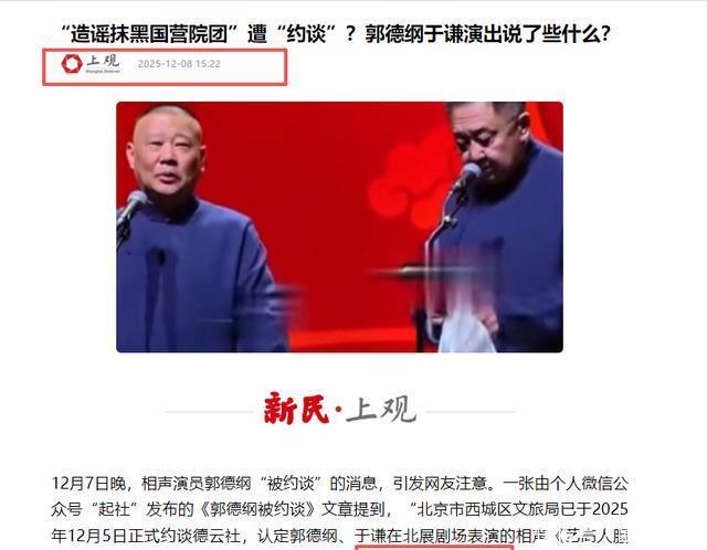 信息来源 上观新闻2025-12-08《“造谣抹黑国营院团”遭“约谈”?郭德纲于谦演出说了些什么?》
